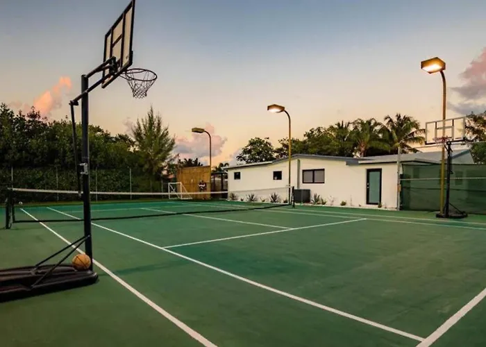 De 5-slaapkamer Luxurious Retreat With Tennis And Soccer Courts Tgh Miami villa ligt op afstand van 3 km tot het Staatspark Oleta River en beschikt over een terras met uitzicht op het zwembad. Deze villa biedt draadloos internet en bevindt zich op rijafstand van 10 minuten van het Samson Oceanfront Park.